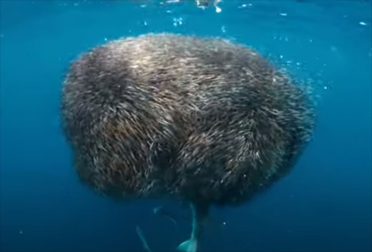 出典:YouTube(Shark attacks school of fish engulfing giant bait ball)