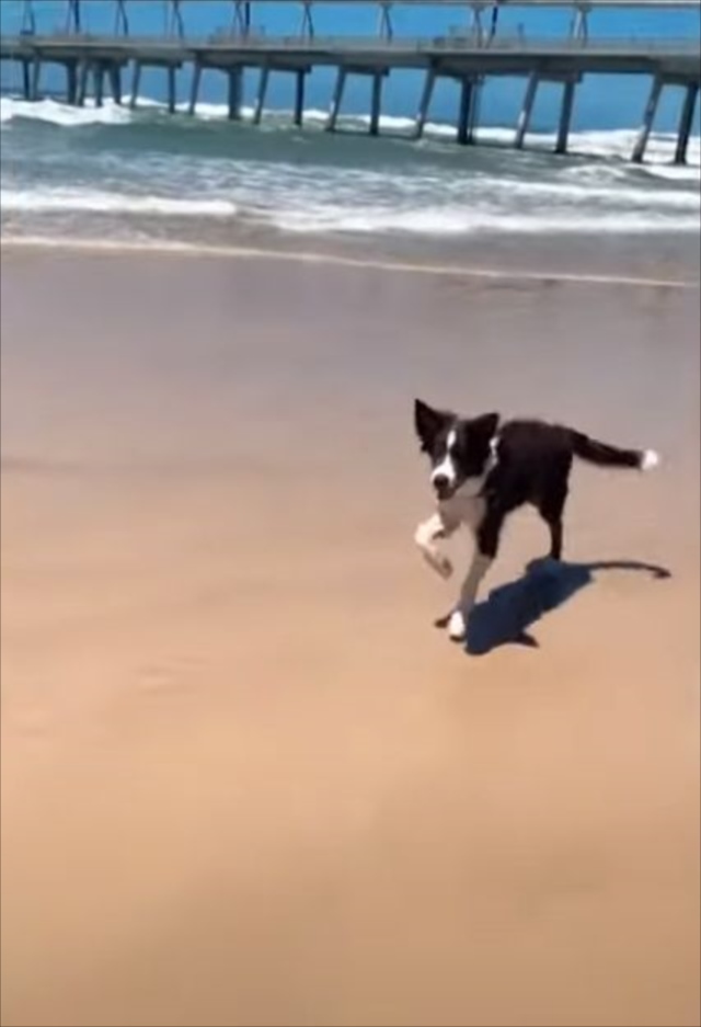 砂浜を勢いよく走り、とっても楽しそうなスティービー。