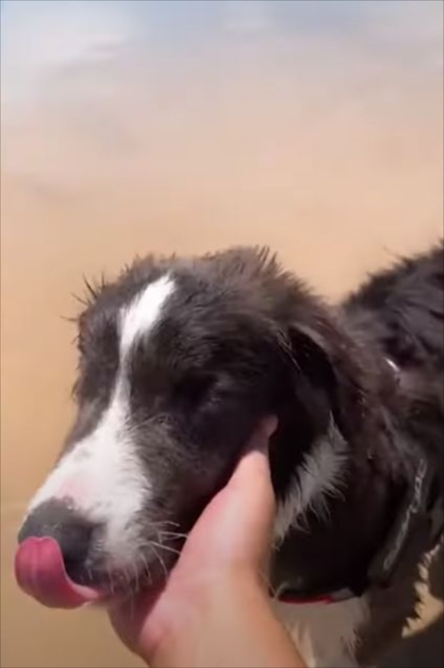 盲目のワンコを、初めて海に連れて行ったという飼い主さん。