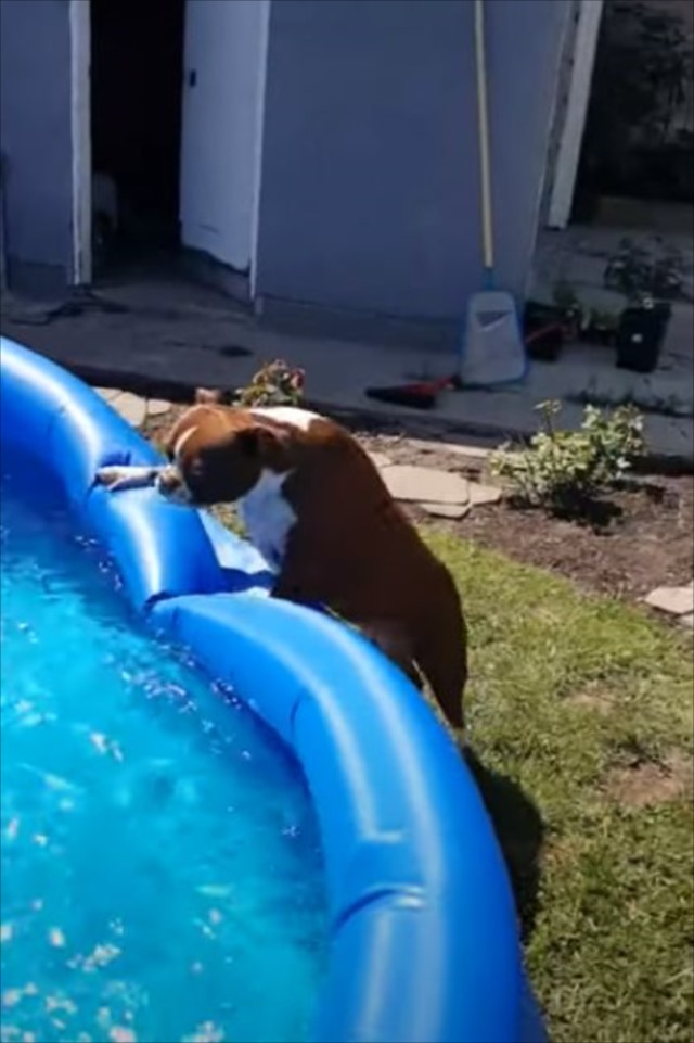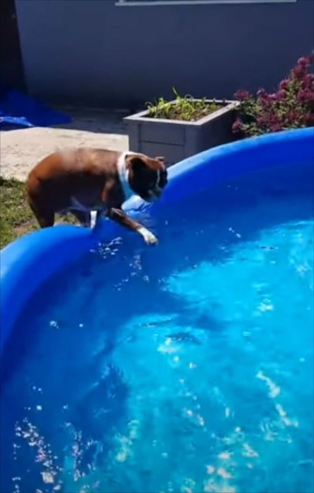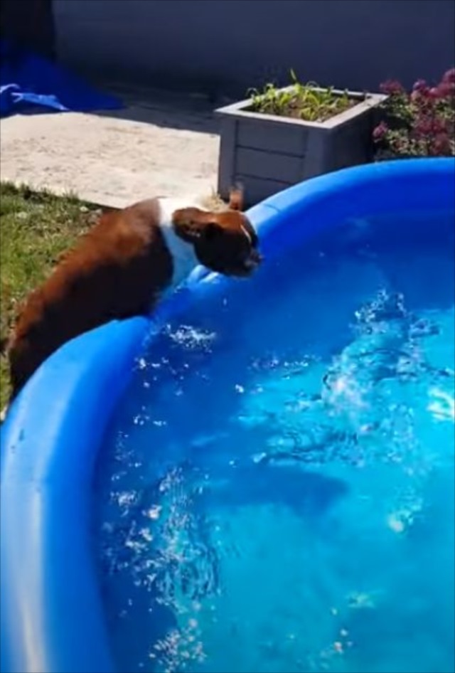 目の前にあるプールに興奮するものの、飛び込み方がわからずに戸惑い続けるワンコが実にかわいらしいのでご紹介します!