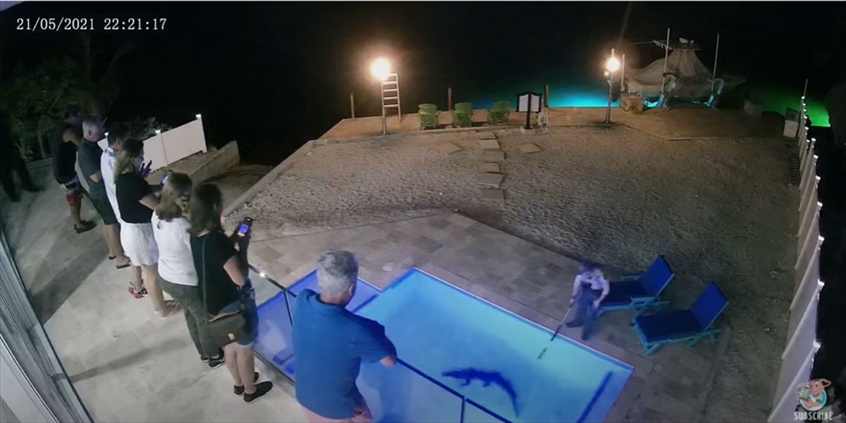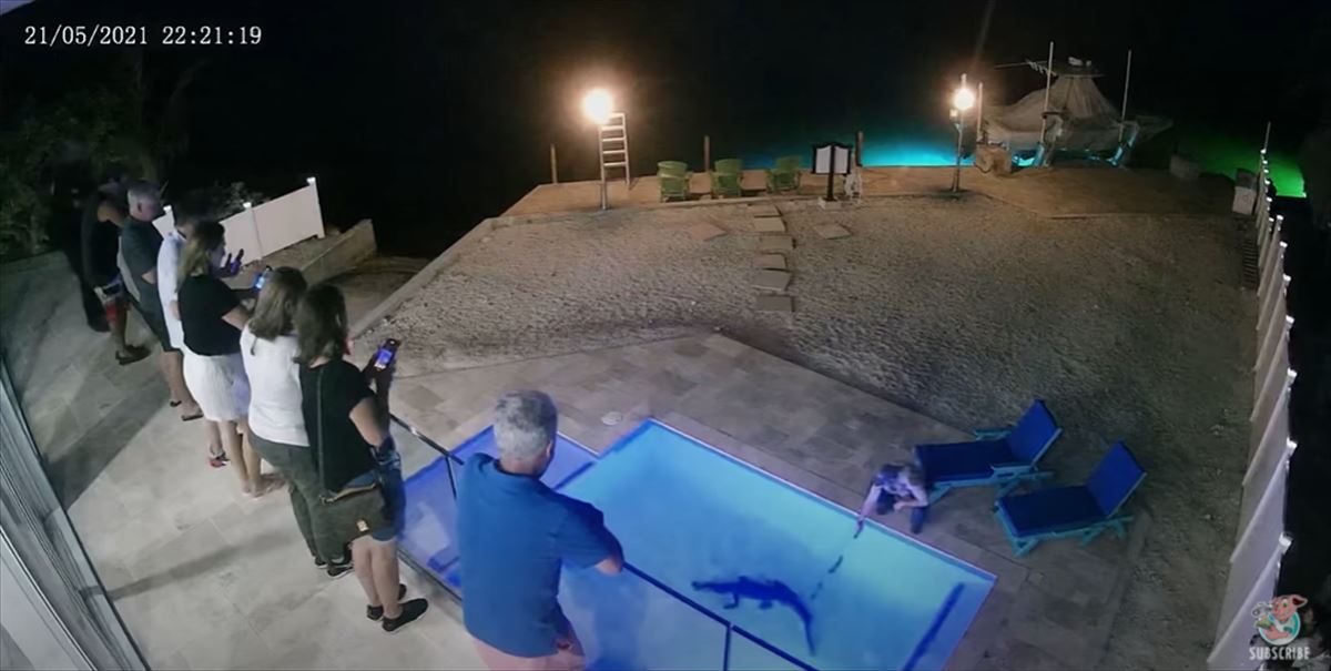 招かれざる客ともいうべきワニがナイトプールに訪れるその光景は、こちらから動画でご覧いただけます。