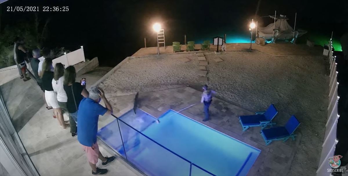 今回は、ナイトプールを堪能しに来たようにしか見えない、招かれざる客の姿を捉えた動画をご紹介します。
