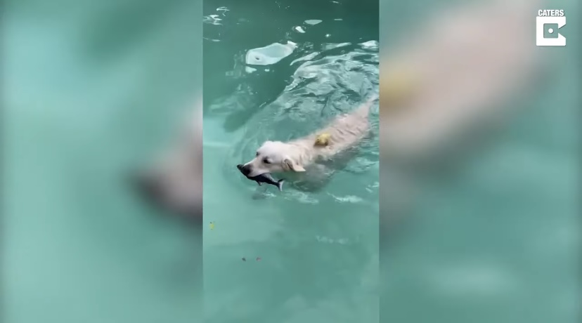 ボーが小さなお友達とプールで遊ぶ姿がこちらです。