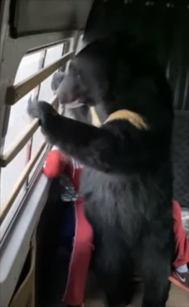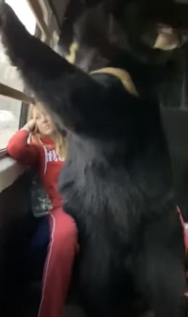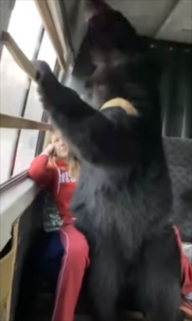 実はこの女性、クマの世話人らしく、このクマは女性の膝の上に乗るのが大好きなのだそうです。