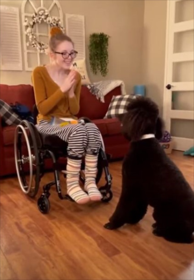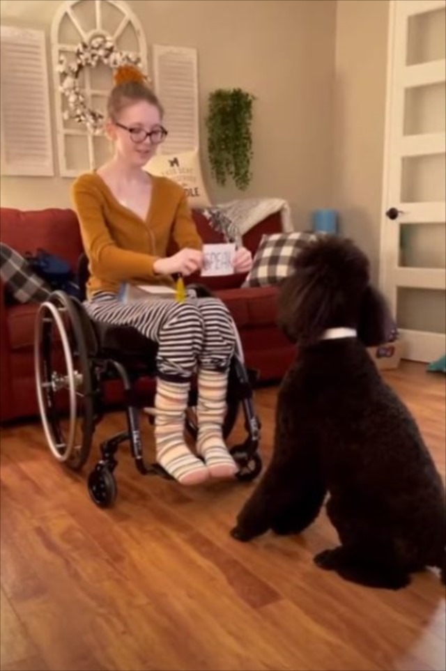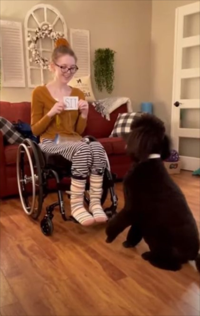 飼い主の女性が「SIT」と書かれた紙を掲げると・・・