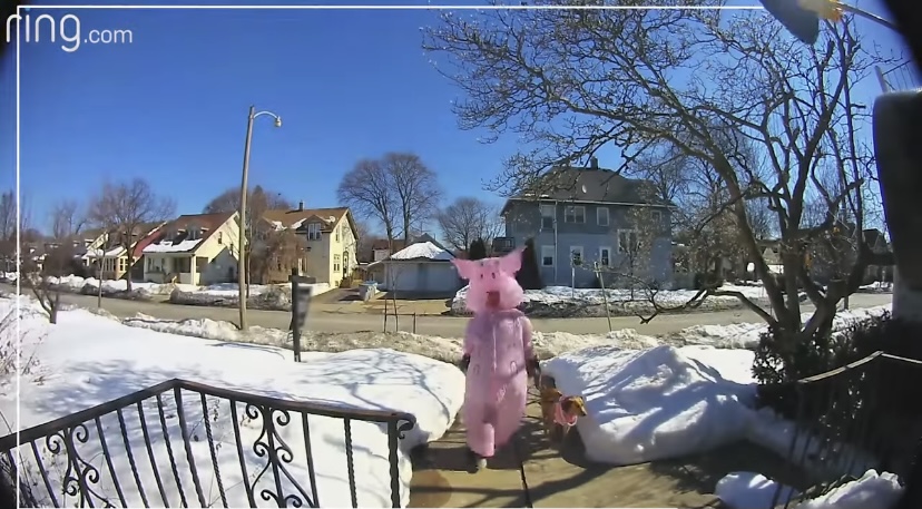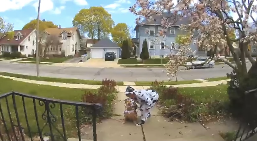 海外のとある住宅の監視カメラが捉えた、ふたりのユニークな姿に思わず笑顔になっちゃいます。