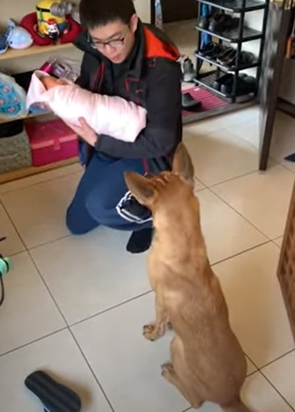 出典:Youtube(Excited Dog Can't Wait To Meet New Family Member)
