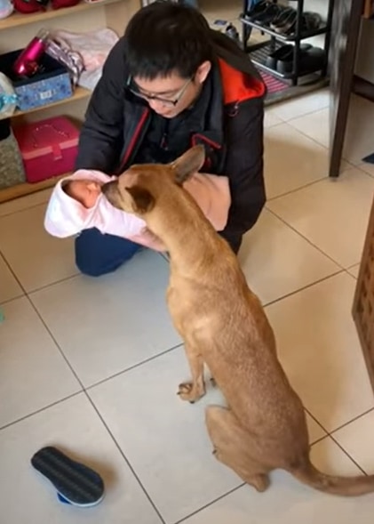 それもそのはず、この日はシャオの飼い主さんの家族のもとに生まれた赤ちゃんと初対面した日だったのです。
