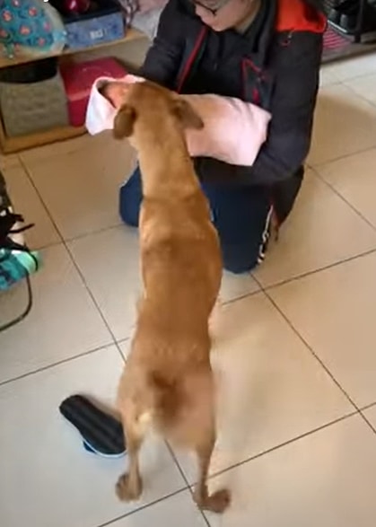 興奮おさえきれぬといった動きを見せる台湾のあるご家庭の一員であるワンコ「シャオ」。