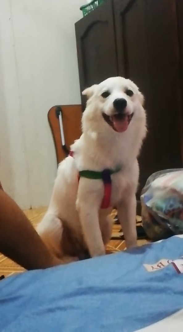動画の主人公は、スピッツとのミックス犬の真っ白でかわいい子犬です。