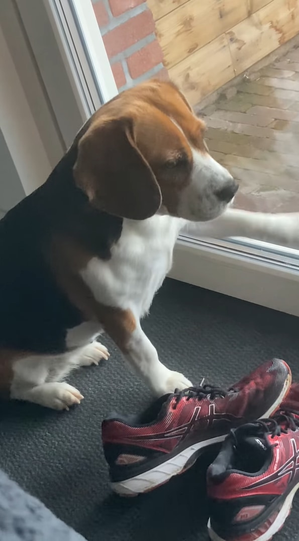 窓をパシパシ叩いて散歩を催促する、無言の圧がすごいビーグルの様子はこちらの動画からご覧いただけます。