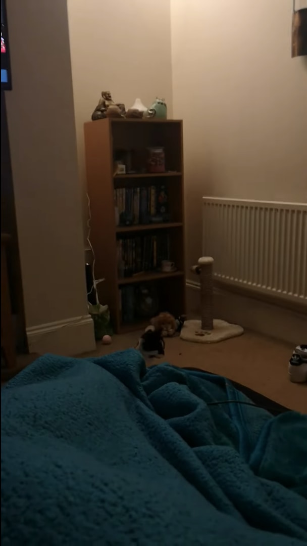 今回ご紹介する動画は、子猫のミアがオモチャで遊ぶ様子を撮影したもの。