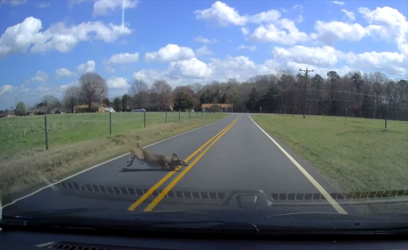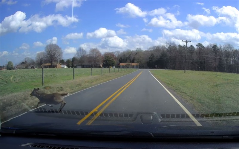 道路にシカが飛び出してきたアクシデントの様子は、こちらの動画からご覧いただけます。