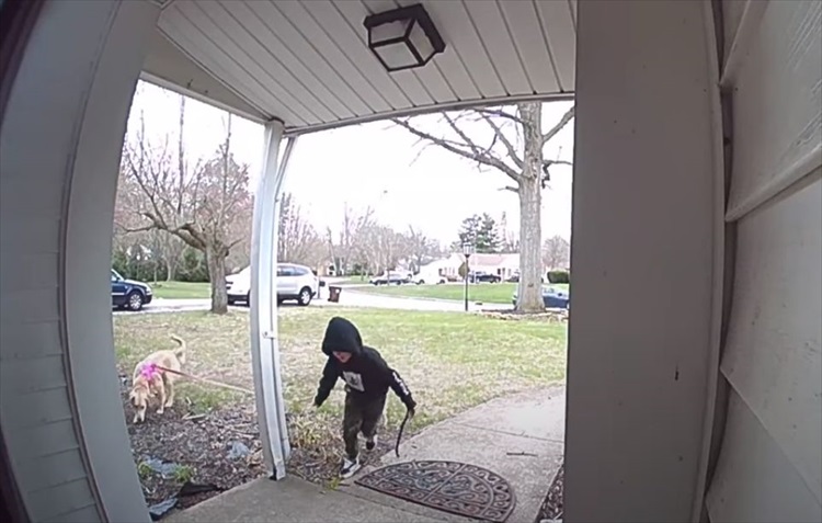 このお宅の息子さん「ドーソン」くんは、愛犬と預かっていた犬のお散歩に出ていました。