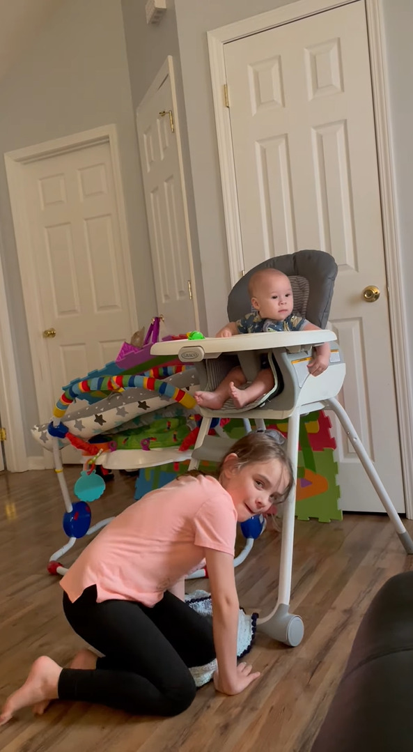 女の子が、生まれてからまだ8ヶ月しか経っていないかわいい弟くんと遊んでいます。