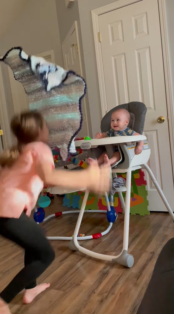 どうやらそのブランケットを使って、赤ちゃんに『いないいないばあ』をしようと考えているみたいです。