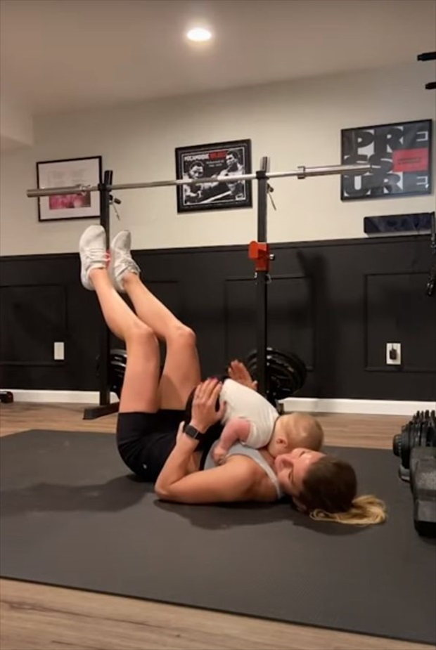 動画には、妊娠中でまだオースティンくんがお腹の中にいる時のトレーニングシーンもおさめられています。