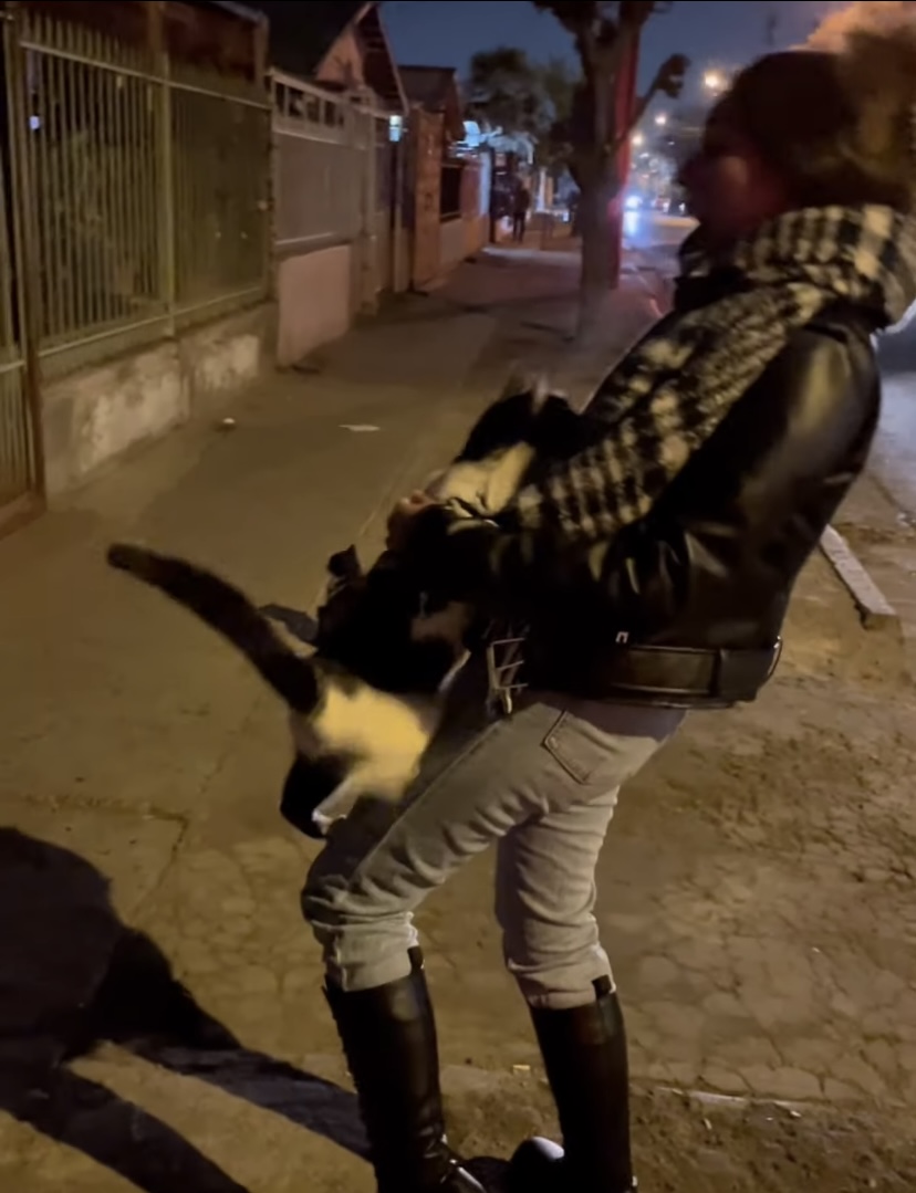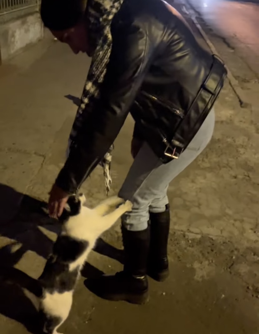 女性に撫でてもらうと、人懐っこいこの野良猫は驚くほど大胆な行動に出ました!