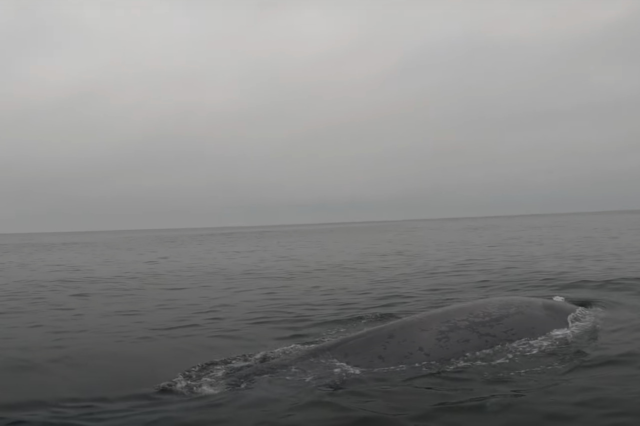 シロナガスクジラに遭遇した男性、興奮した様子でその後を追いかけます。