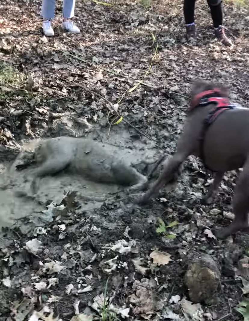 そこには、ぬかるみに入って全力で泥遊びする犬の姿がありました。