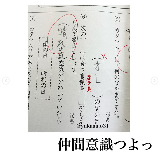 今回ご紹介するのはゆか@5児母の記録(yukaaa.o31)さんがInstagramに投稿した、次女さんの前期の学習物の中から抜き出した珍回答まとめです。
