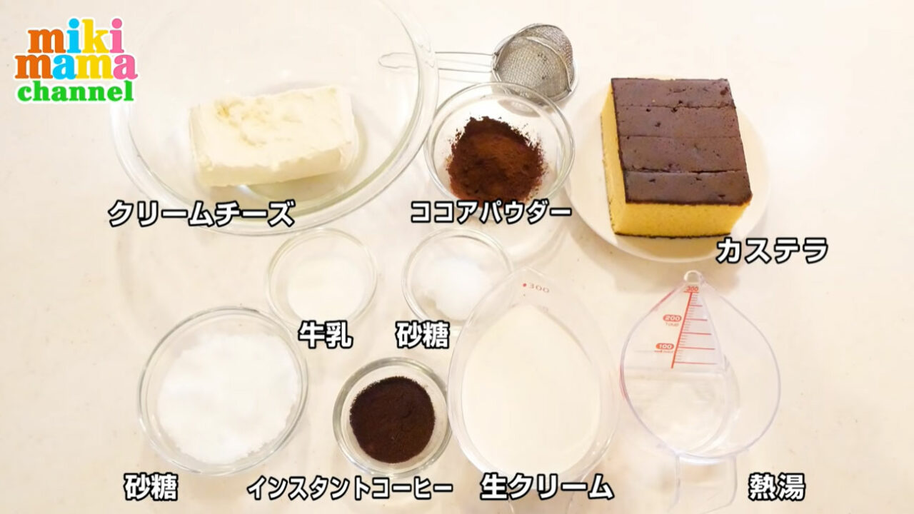 ティラミスと言えば、マスカルポーネチーズを使うイメージですが・・・クリームチーズで仕上げちゃうそうなんです!さすがみきママ。早速作り方を見ていきましょう。