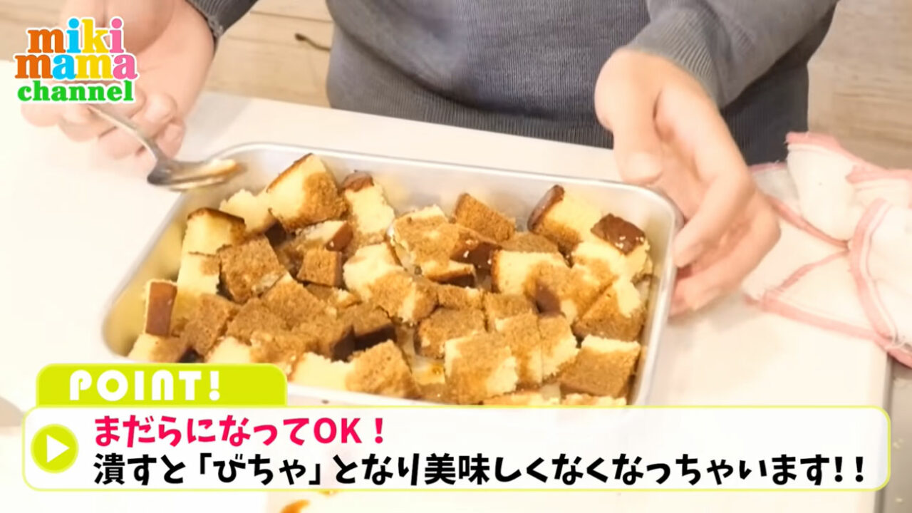 カステラがない場合は食パンでも代用できるそうです!(食パンの場合は熱湯と砂糖の量を少し増やすと良いそうです)