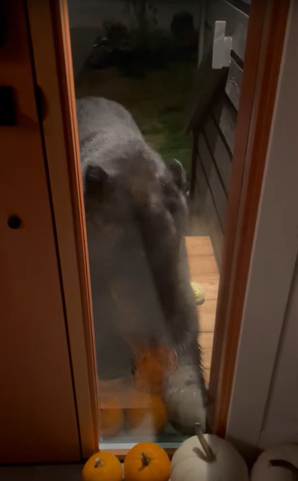 土地柄、こちらのお宅ではよくクマを見かけるのだそうですが・・・、夜中に玄関前にクマが現れるだなんてビックリですね!!