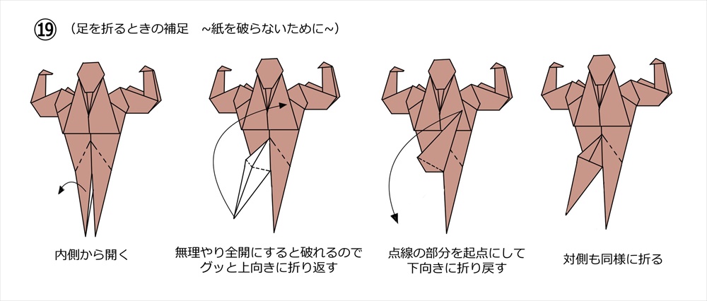 作業の合間に鶴を折りながら時間潰しをしていたところ、ふと思いついたというマッチョの折り方を、わかりやすいイラストでご紹介されています。