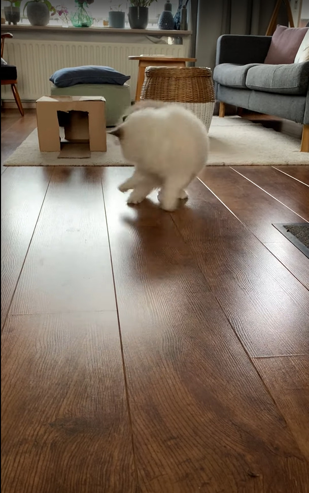 生後4ヶ月のラグドールの子猫が遊んでいる姿を、飼い主さんがカメラにおさめたものです。