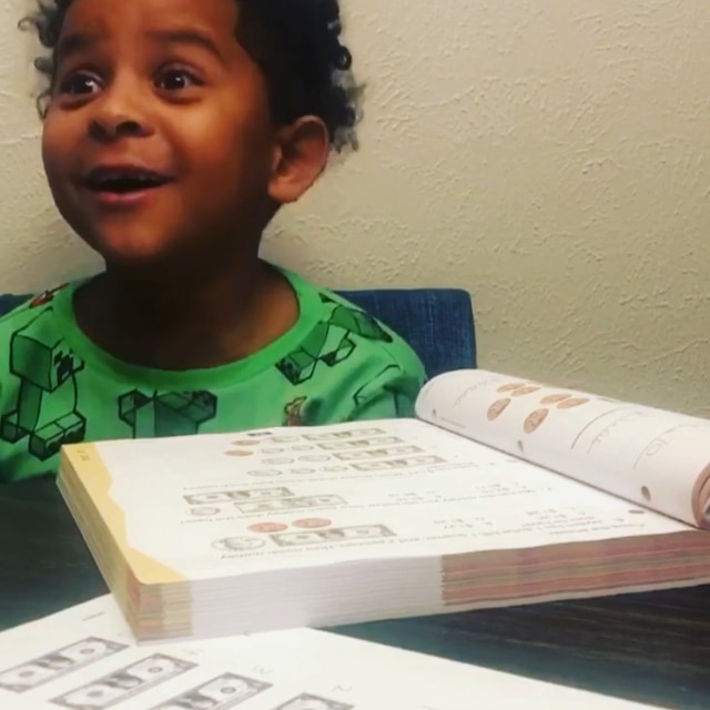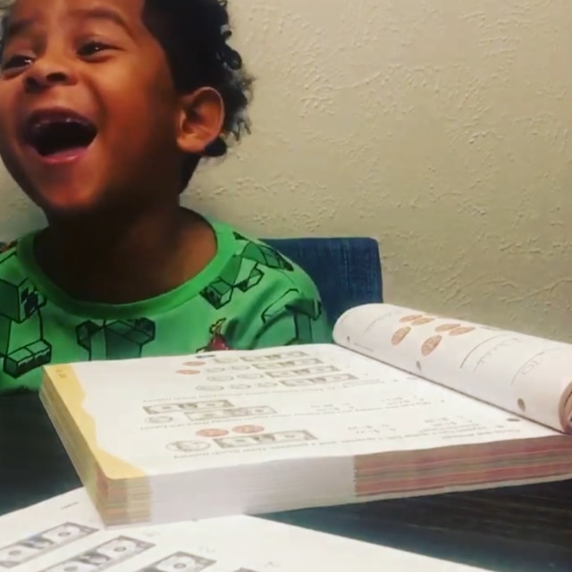 この時、家庭教師役をしていた叔母さんは、算数の教科書にパックスくんのいとこ「ジェイデン」くんの名前が登場することに気付きます。お馴染みの名前の登場にパックスくんがはしゃぐだろうと確信した叔母さんは、その反応を動画で撮影することに。結果は予想通りでした(笑)