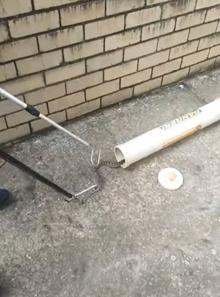 男性はレンガ壁の隙間に逃げてしまったそのヘビを見事捕まえることに成功したのです。