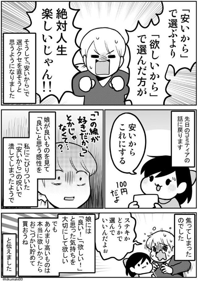 きくまきさんは「安いから買う」という染みついた考えを「安いからの呪い」と表現。