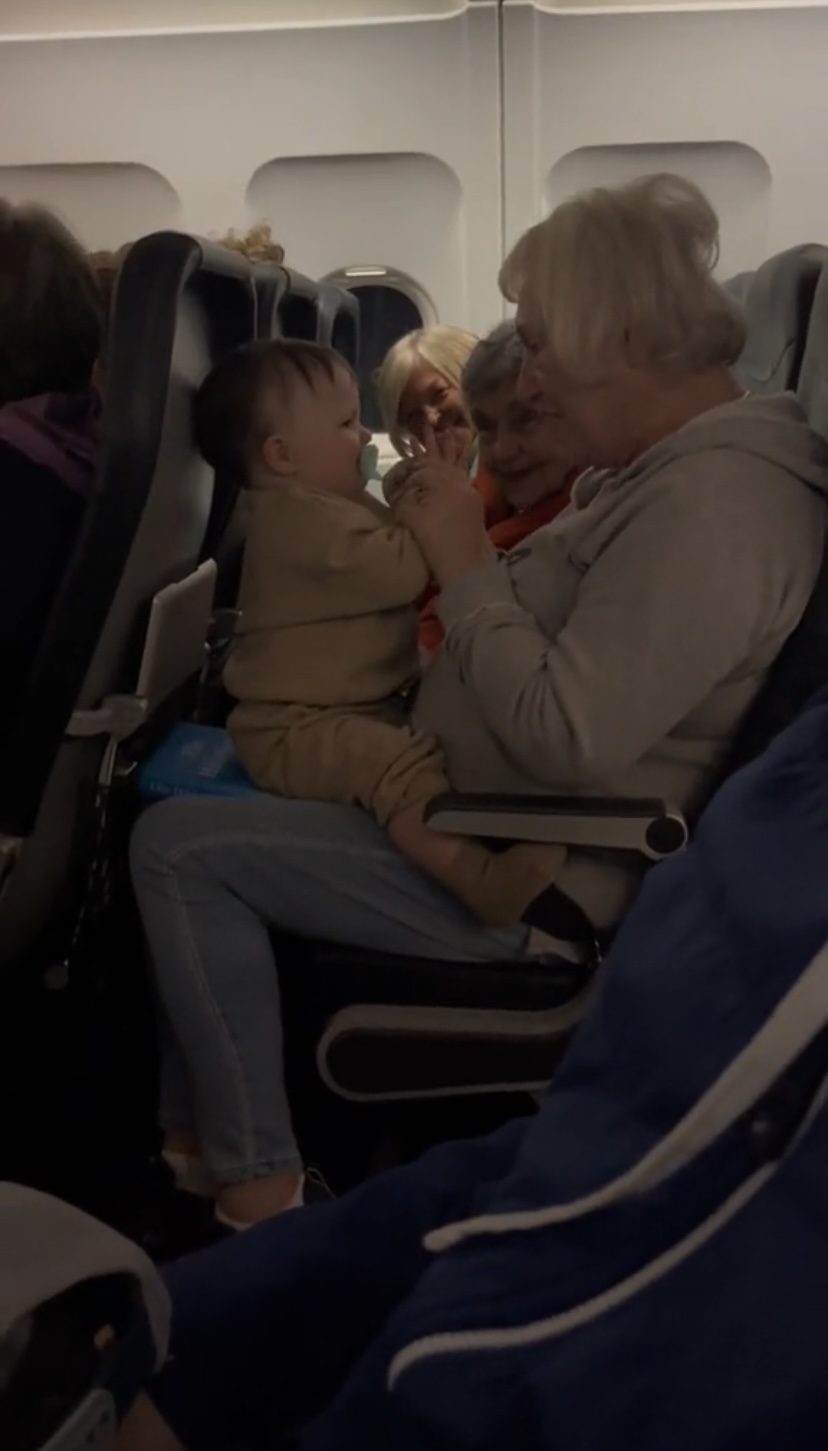 飛行機の中で泣き止まない娘をあやしてくれる年配の女性たち。