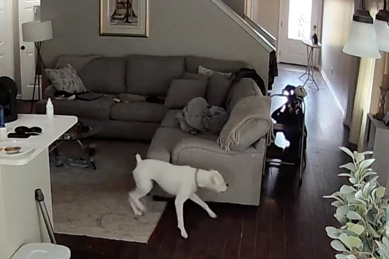 ペットカメラやホームセキュリティカメラの映像のようです。