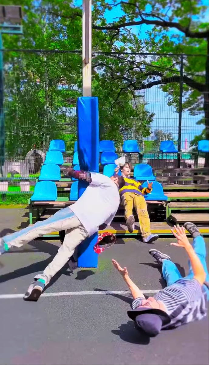 この男性はマネキンそっくりな動きで地面に倒れ込みました。