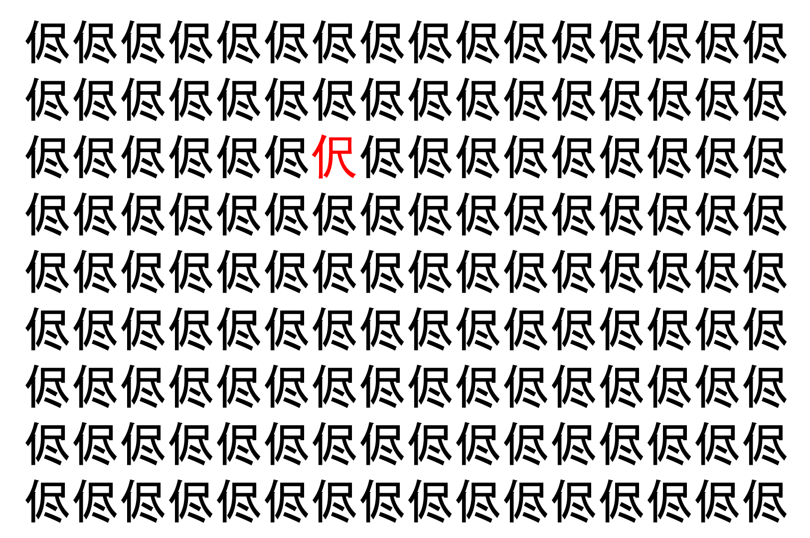 【脳トレ】「侭」の中に紛れて1つ違う文字がある!?あなたは何秒で探し出せるかな??【違う文字を探せ!】