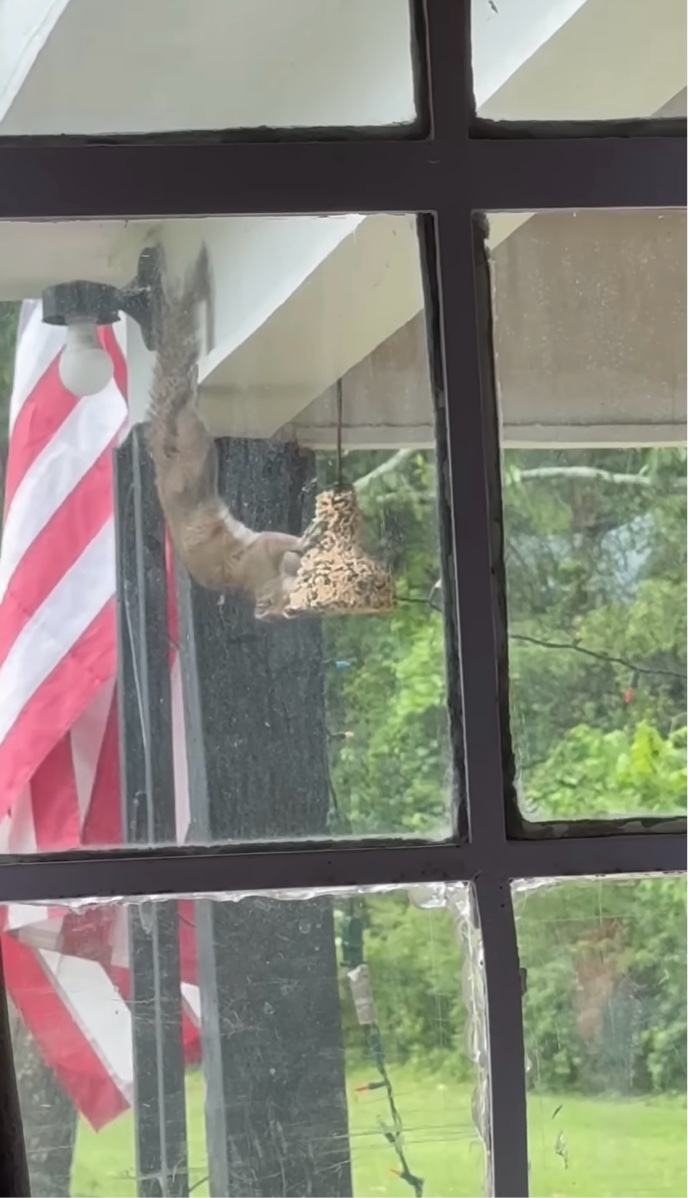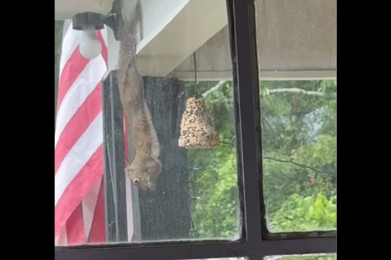 リスが逆さに!?ハプニングかと思ったら・・口をモグモグさせていた!!【アメリカ・動画】