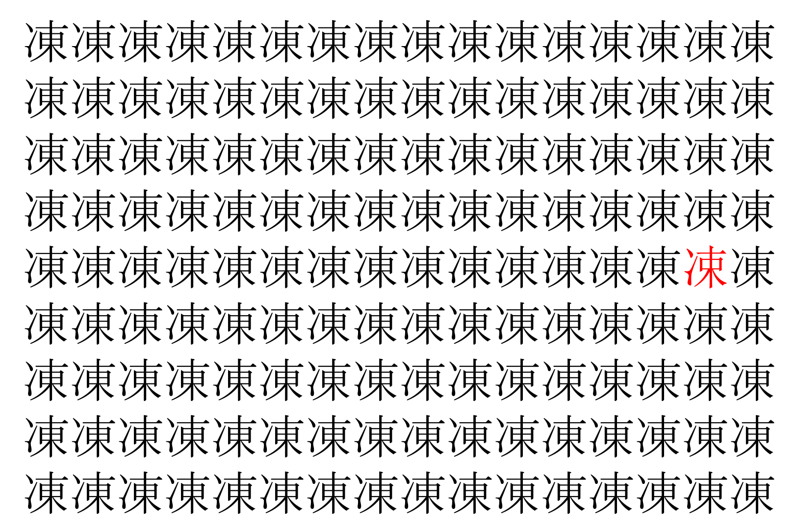 【脳トレ】「凍」の中に紛れて1つ違う文字がある!?あなたは何秒で探し出せるかな??【違う文字を探せ!】