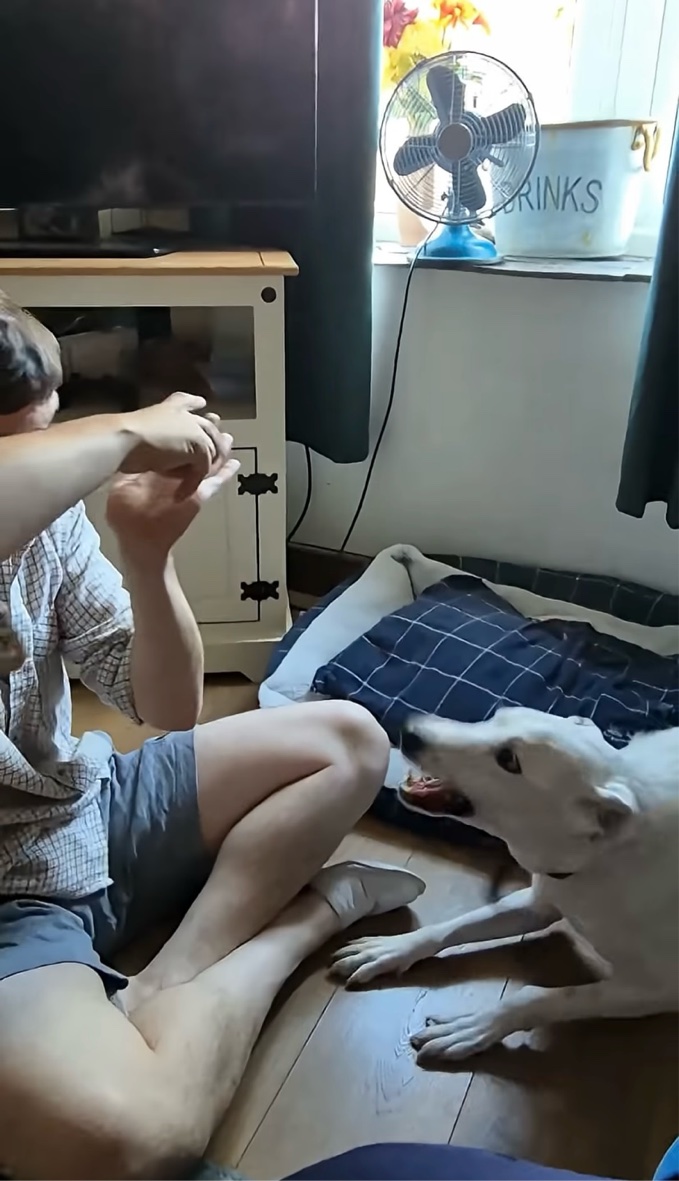 耳の聞こえない愛犬に、ジェスチャーで「ある合図」を送る飼い主さん。