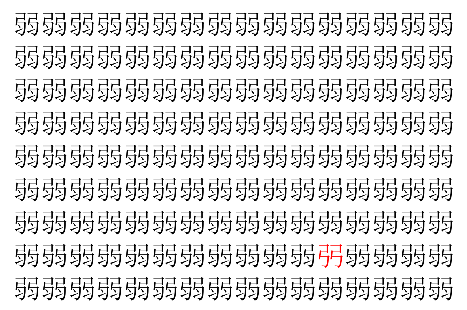 【脳トレ】「弱」の中に紛れて1つ違う文字がある!?あなたは何秒で探し出せるかな??【違う文字を探せ!】