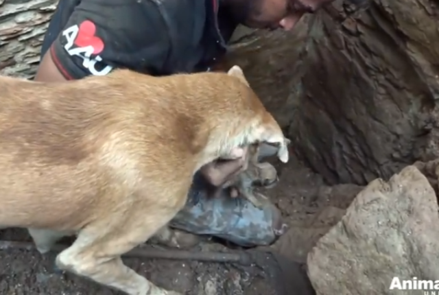 母の愛は偉大!生き埋めになってしまった子犬を必死で救出しようとする母犬の姿に心打たれる