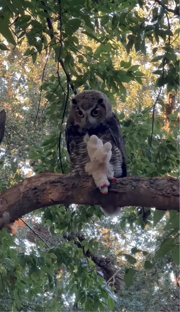 なんと、フクロウがぬいぐるみを無傷のまま返してくれたそうです!