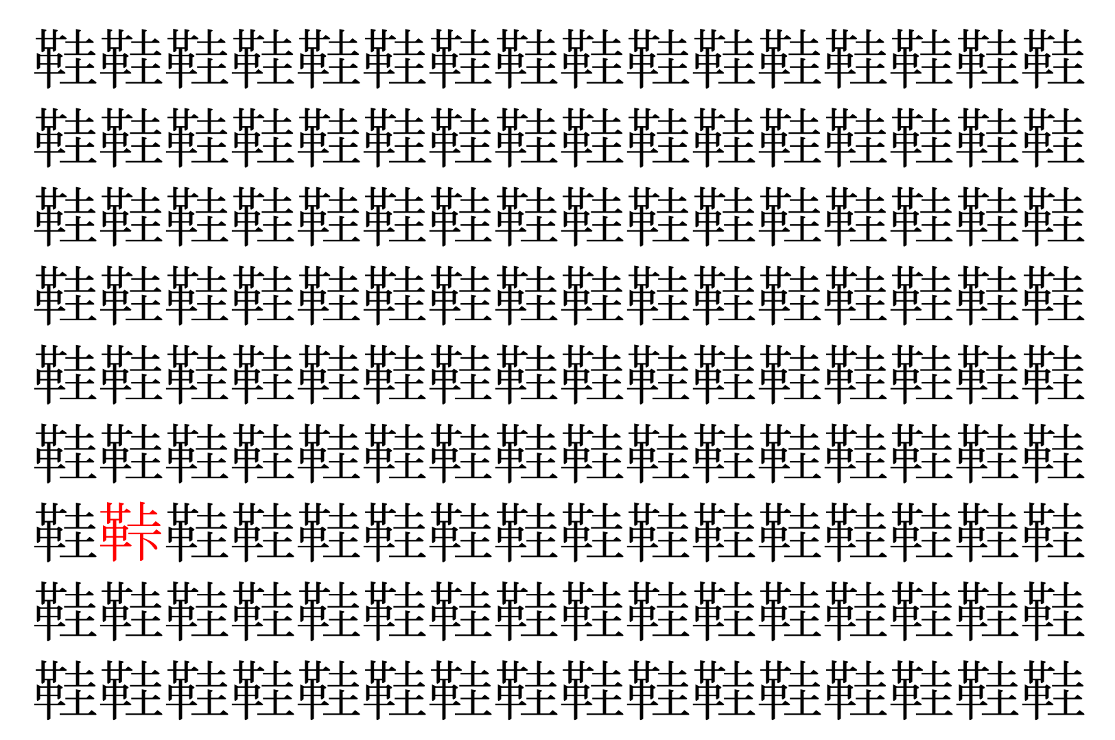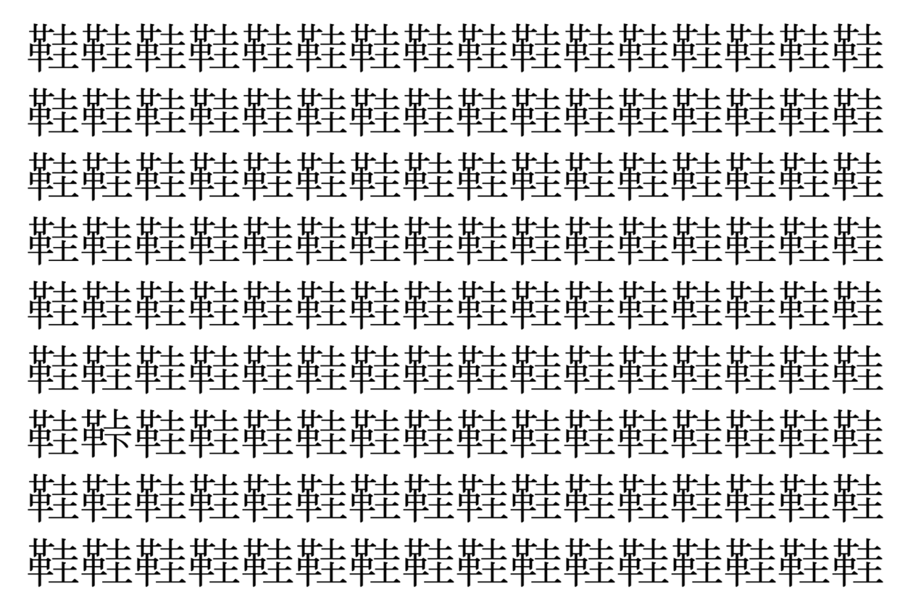 【脳トレ】「鞋」の中に紛れて1つ違う文字がある!?あなたは何秒で探し出せるかな??【違う文字を探せ!】