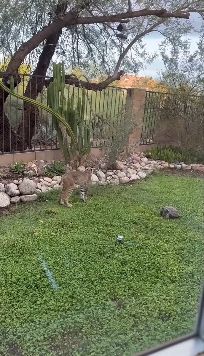 撮影者さんが室内から裏庭を覗くと、そこにはボブキャットの姿がありました。