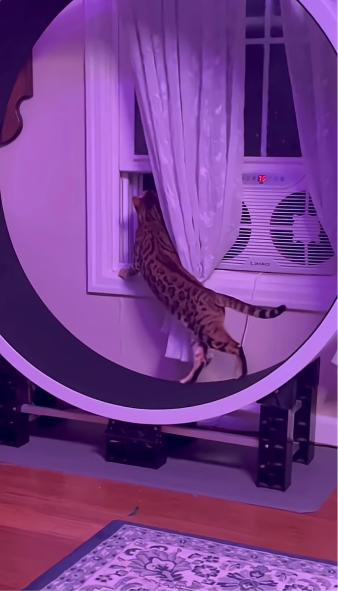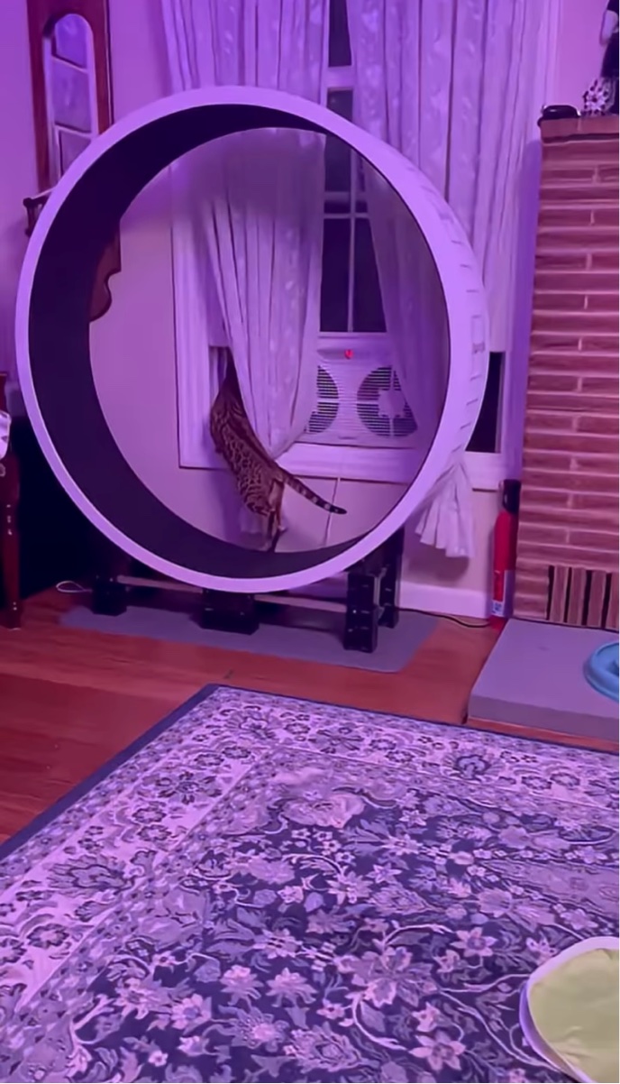 カメラの前には、キャットホイールで運動するネコの姿がありました。