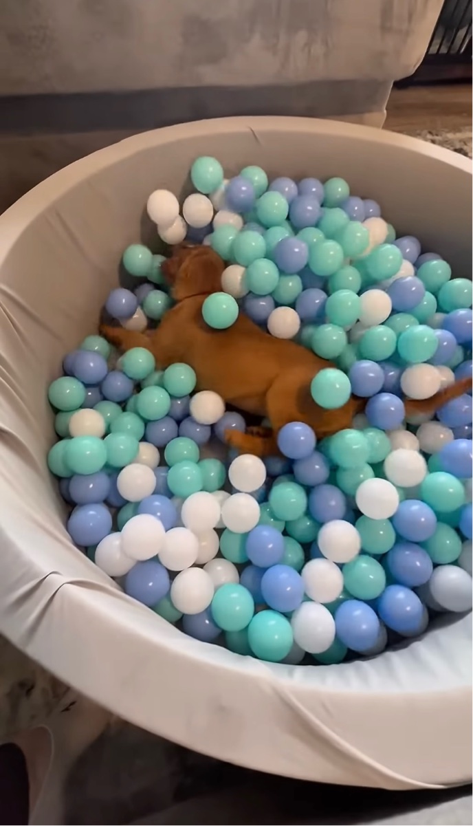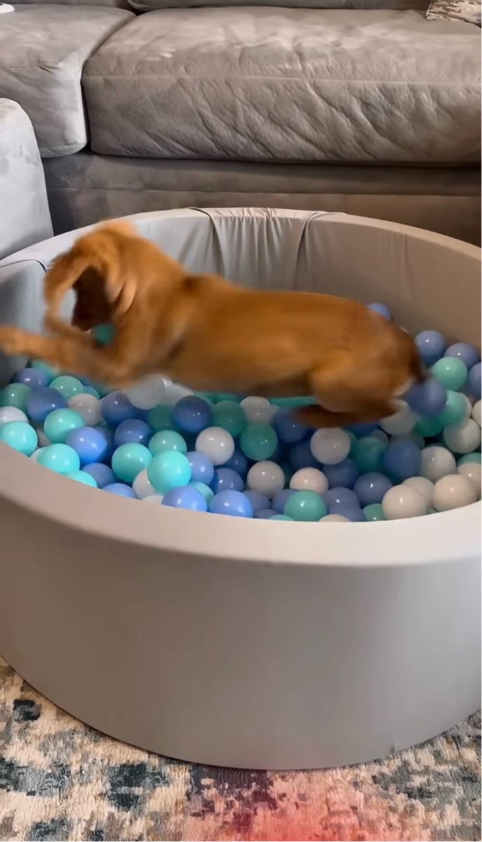 そう、飼い主さんはセージのために「ボールプール」をサプライズで準備していたのです!