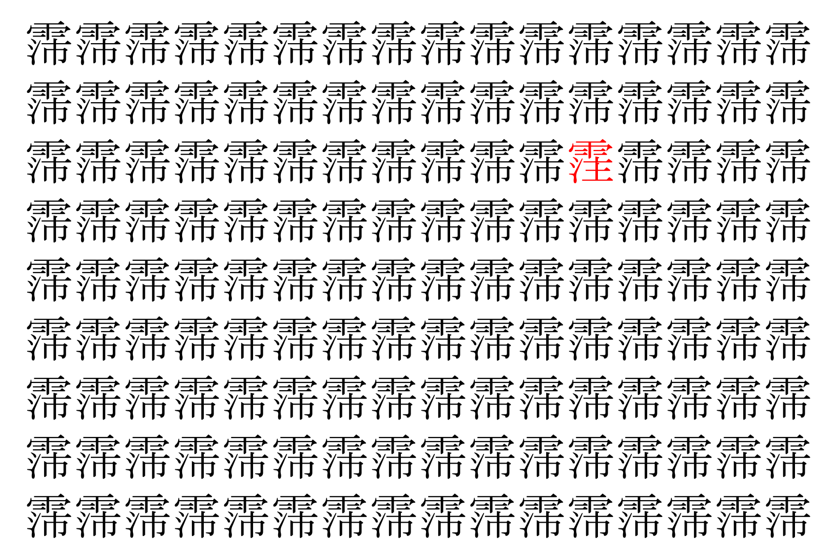 【脳トレ】「霈」の中に紛れて1つ違う文字がある!?あなたは何秒で探し出せるかな??【違う文字を探せ!】