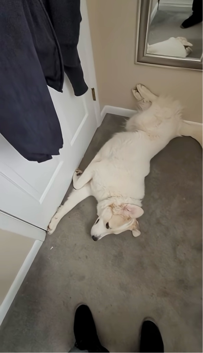 不審者の侵入を阻止すべく、番犬・ノアがドアの前に立ちはだかります。