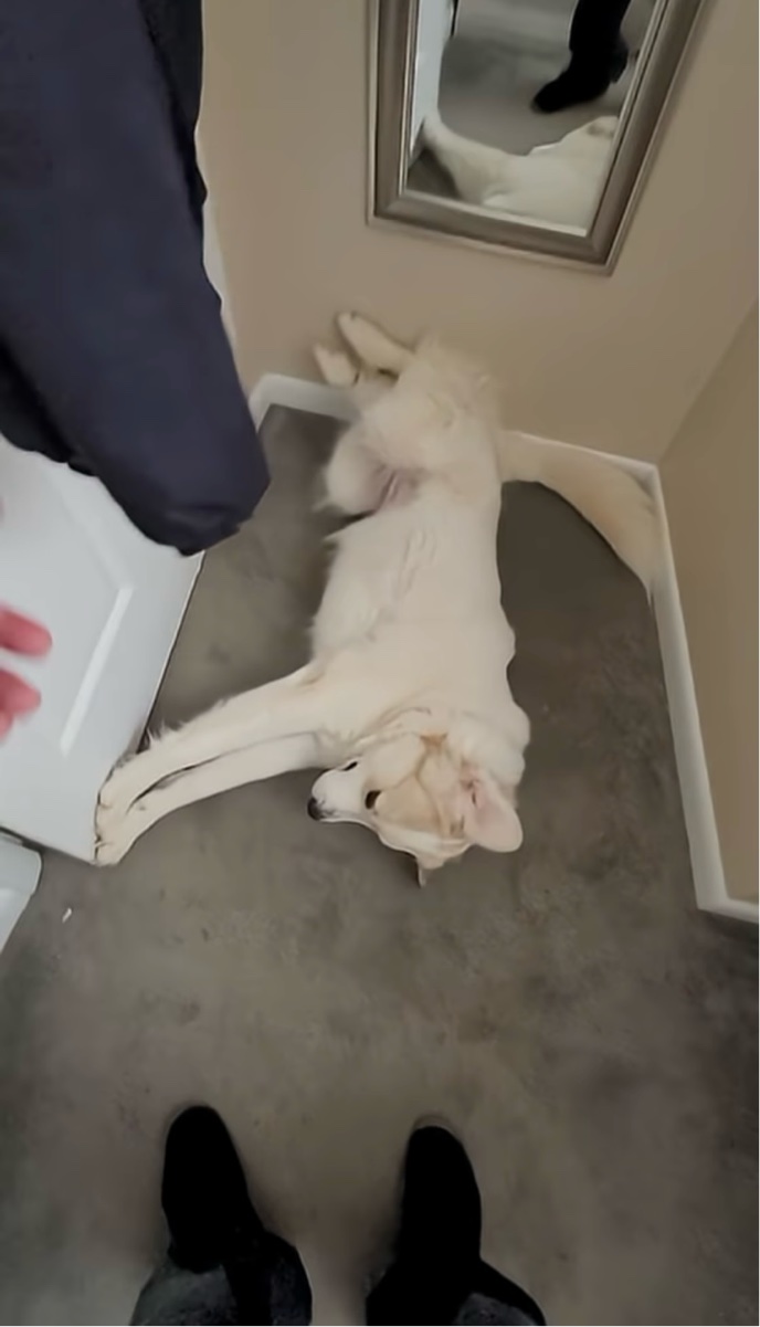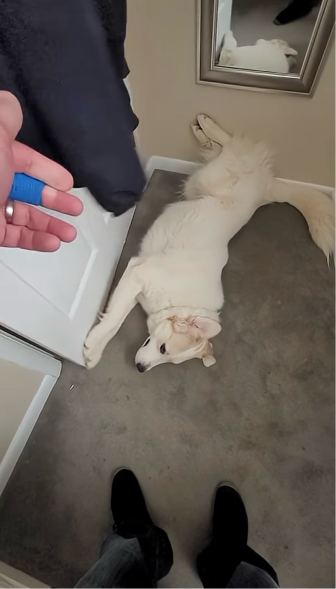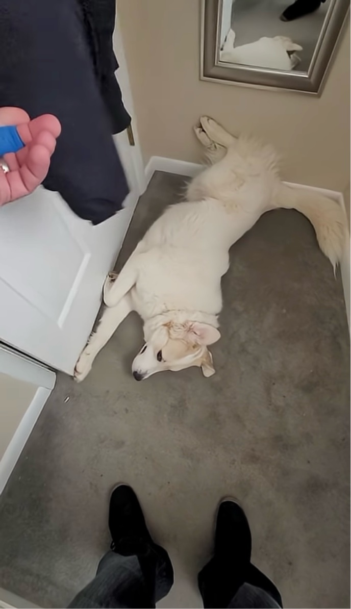 ただし守りが完璧すぎて、不審者だけじゃなく飼い主さんにだってドアを開けさせようとはしません。